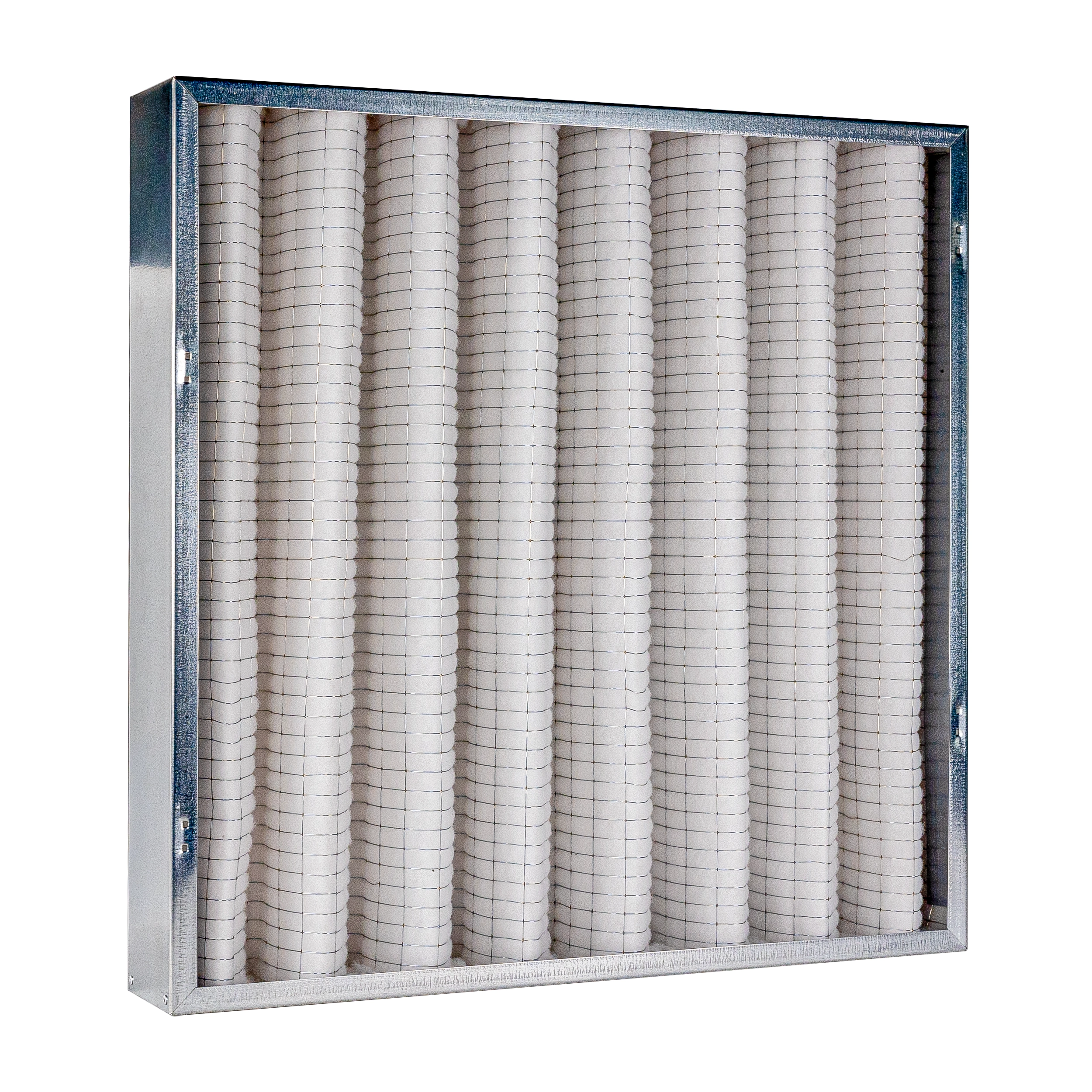 Filtri ondulati con materiale filtrante sintetico disponibili di categoria Coarse 20%, Coarse 30%, Coarse 40%, Coarse 50%, Coarse 60%, Coarse 65%, Coarse 85%, ePM1 50%, ePM1 60%, ePM1 70%, ePM1 90%, ePM10 50%, ePM10 60%, ePM10 85%, ePM2,5 60%, F7, F8, F9, G2, G3, G3-M1, G4, G4-M1, M5, M6 per il settore Filtri per applicazioni speciali, Filtri per aria condizionata, Filtri per data center, Filtri per il settore civile, Filtri per il settore ferroviario, Filtri per il settore industriale, Filtri per il settore navale, Filtri per la filtrazione dei fumi, Filtri per la verniciatura, Filtri per UTA, Filtri per VMC. Dimensioni a richiesta o standard. Sviluppato in Fibra di poliestere, Fibra di poliestere antibatterico, Fibra di poliestere impregnata con carbone attivo, Fibra di vetro, Fibra in polipropilene, Polipropilene, Poliuretano, Poliuretano morbido.
